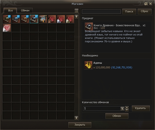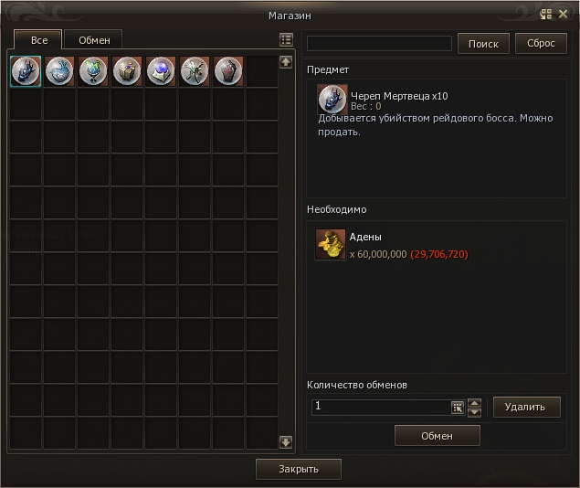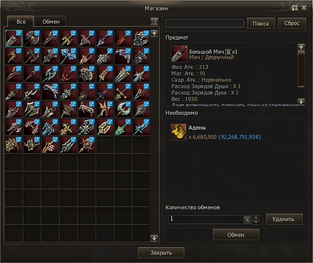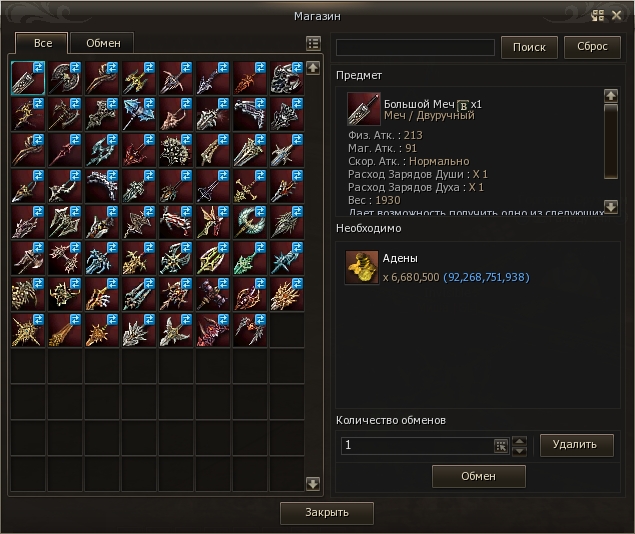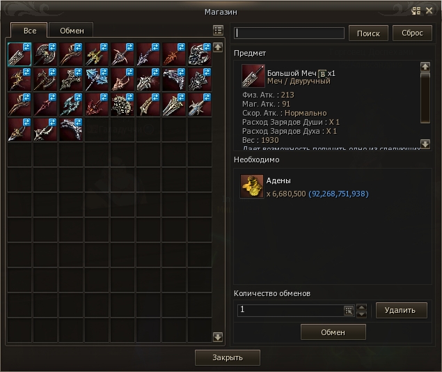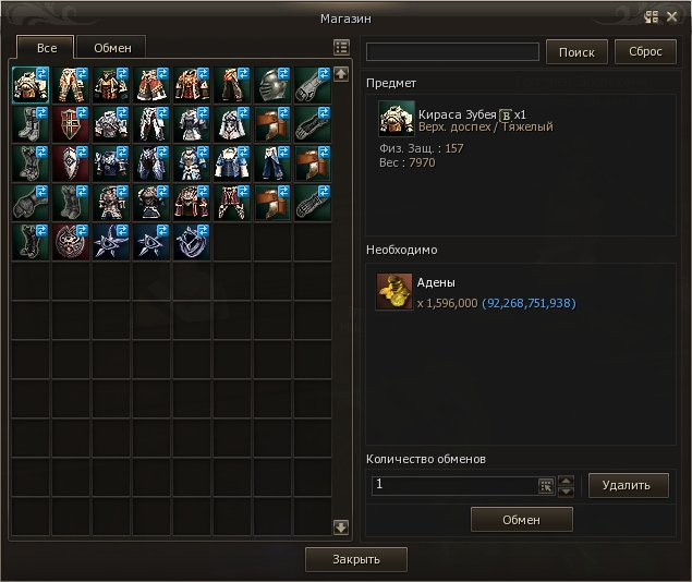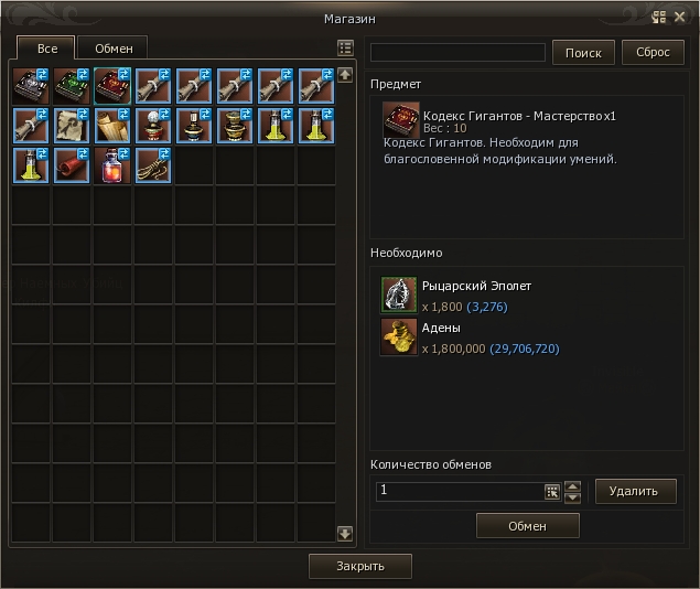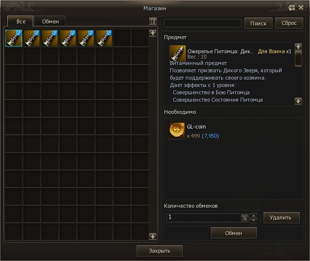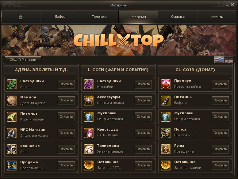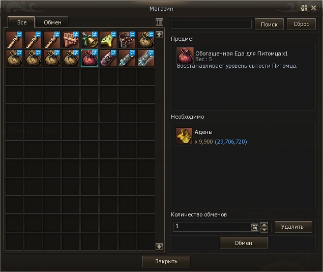 | Питомцы (адена) | NPC магазин (эполеты) |
