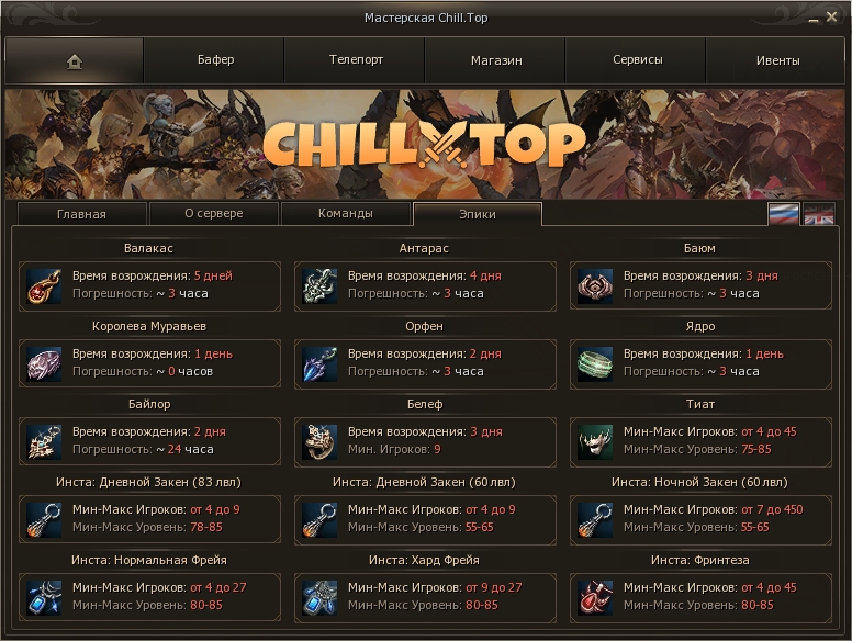 Перед нами не стояла задача в точности повторить систему с хроник выше, мы намеренно оставили ограниченный функционал, дабы не превратить игру на проектах GameLife в постоянный фарм на боте.